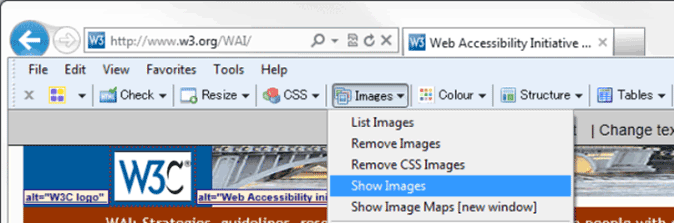 However, some checks are easier if you can download tools. To keep it simple, we've included instructions for just two tools: the Web Developer Toolbar for Chrome, Opera, and Firefox ("WebDev Toolbar") and the Web Accessibility Toolbar for Internet Explorer ("IE WAT"). Both are free extensions/add-ons available in different languages.