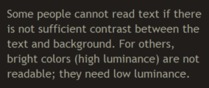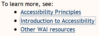 This page covers just a few accessibility issues. There are other accessibility issues not covered in these easy checks, for example: links, data table markup, reliance on color, and much more.