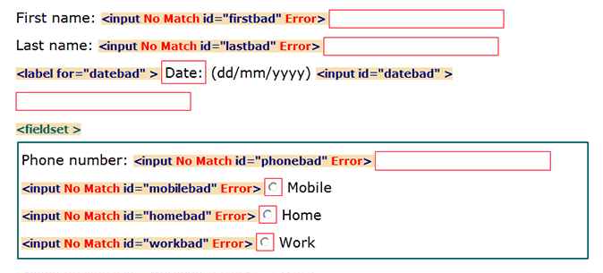 Notice that that radio button labels are not with the buttons. (This is because the page uses layout tables incorrectly.)